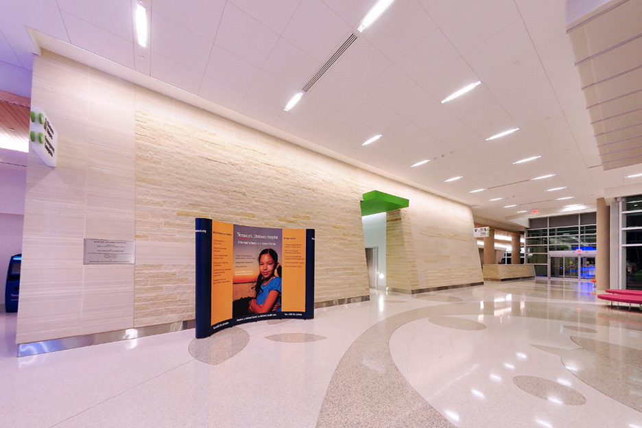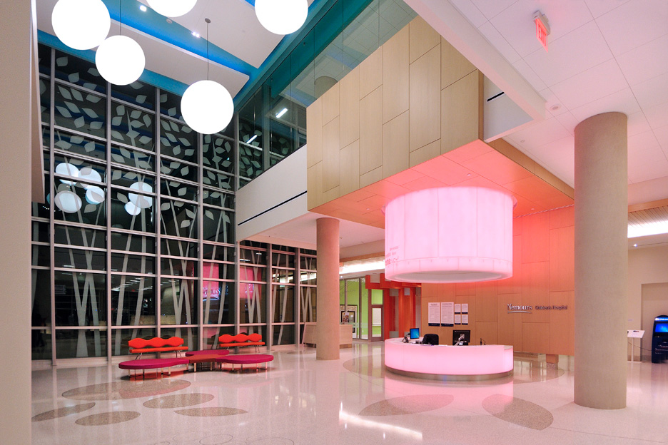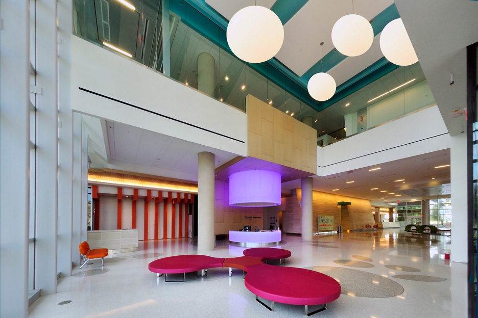 A little patient’s first impression of Nemours Childrens Hospital on entering might be, “Hey Mom, are we at Disney”? With color choices assisted by kids, the spendid interior and exterior architecture were a treat to shoot over 25 sessions, and at times examples of dynamically colored modern art… not just another picture.